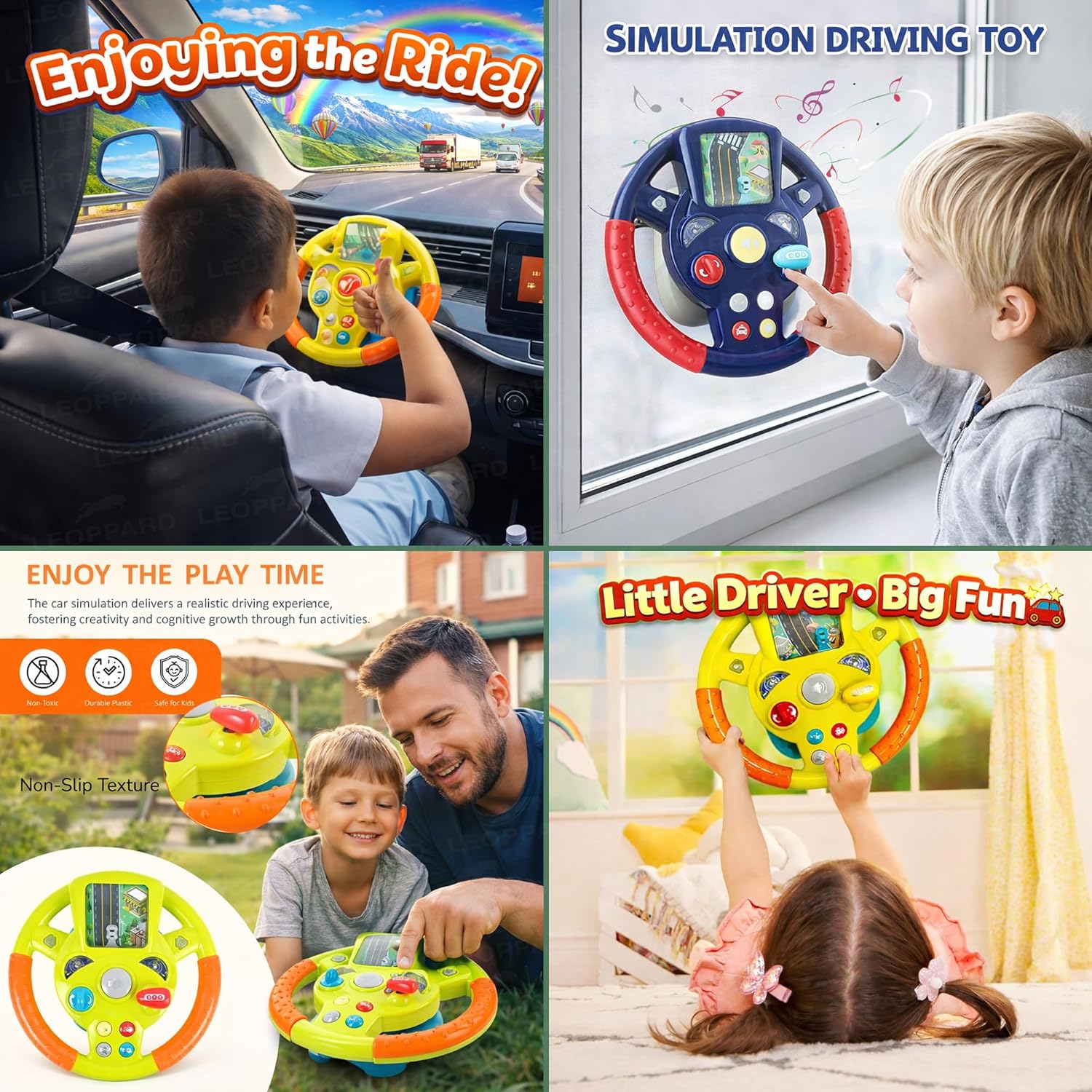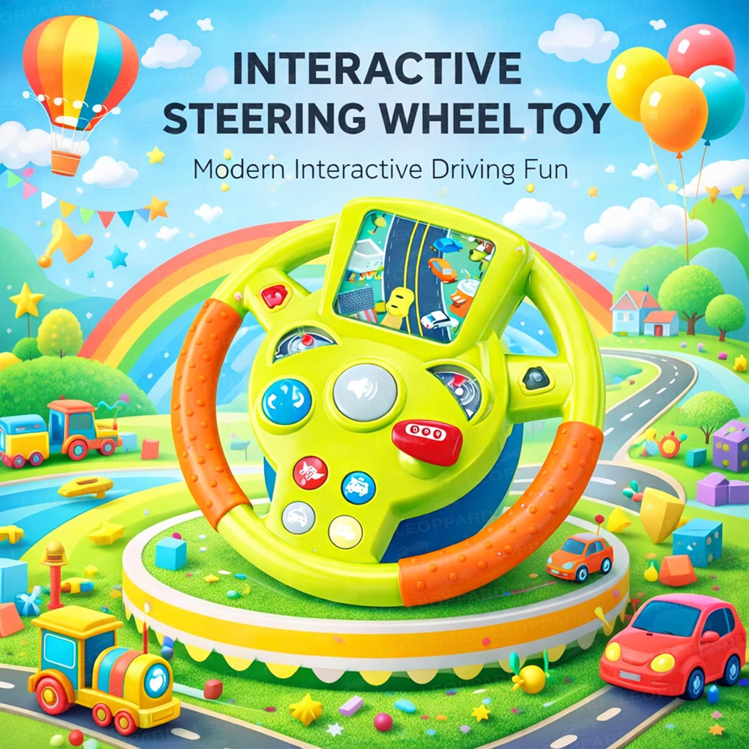 This steering wheel toy is designed like a real car dashboard, giving kids a fun and realistic driving experience with interactive buttons, sounds, and smooth steering action. It features flashing lights, engine sounds, horn effects, and cheerful music to keep children engaged while supporting hand–eye coordination, motor skills, and reflex development. The toy also encourages cognitive growth, cause-and-effect learning, and imaginative role play. Made from high-quality, non-toxic, BPA-free materials with smooth edges, it is safe for children and makes an ideal gift for birthdays and special occasions.